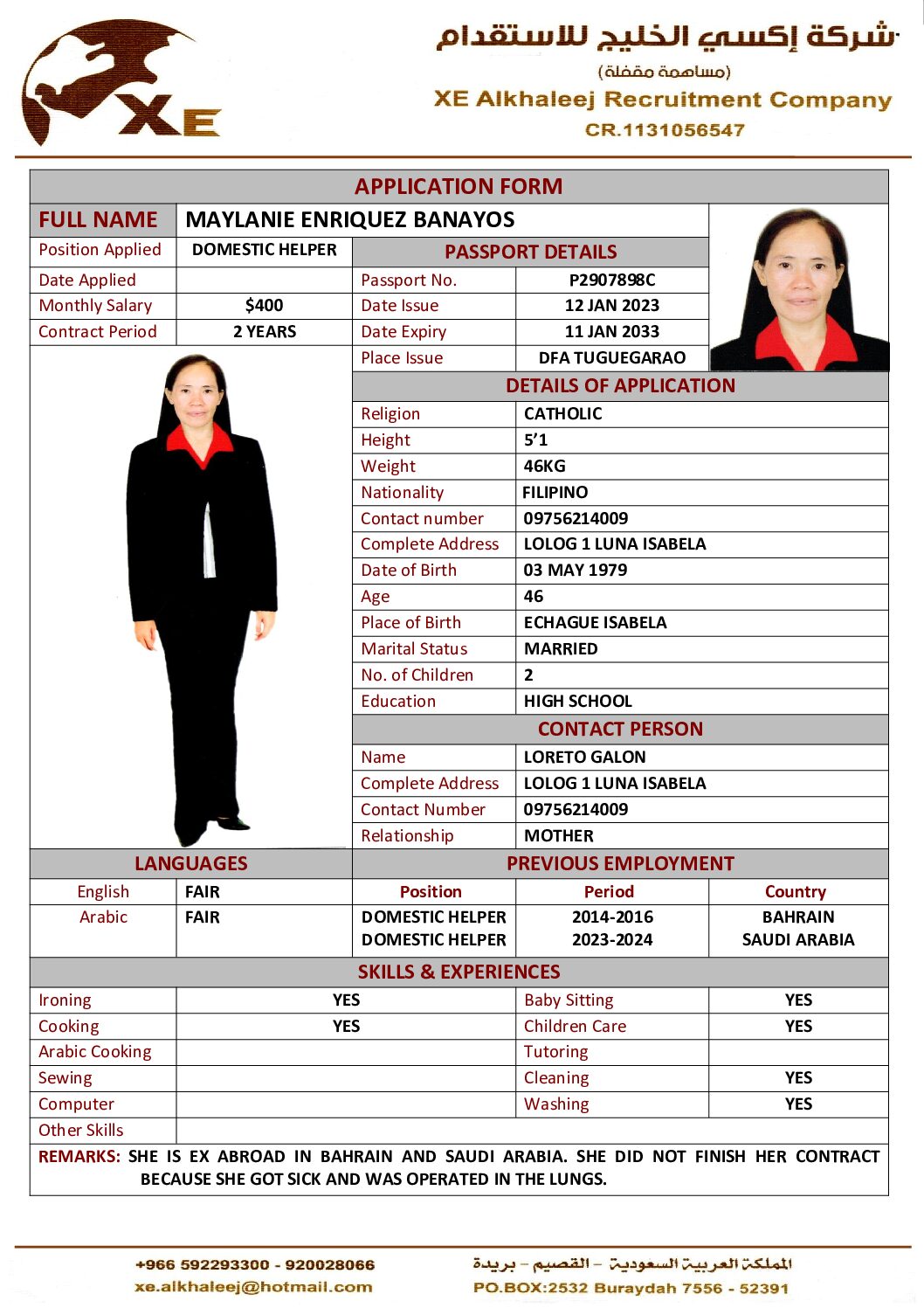 MAYLANIE ENRIQUEZ BANAYOS | استقدام الفلبين